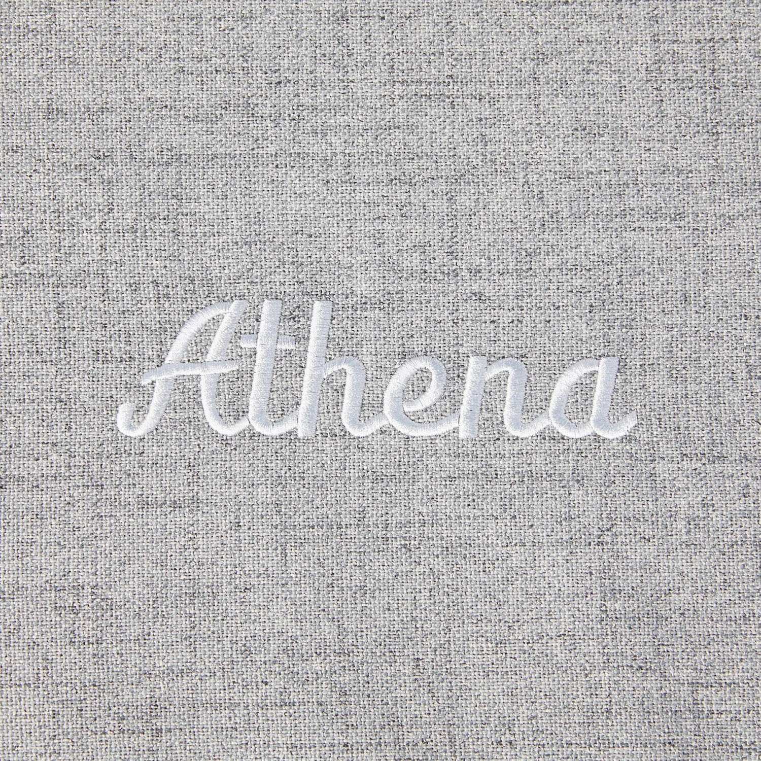 • Customizable with your choice of light gray or navy thread and flair script or block cap fonts.