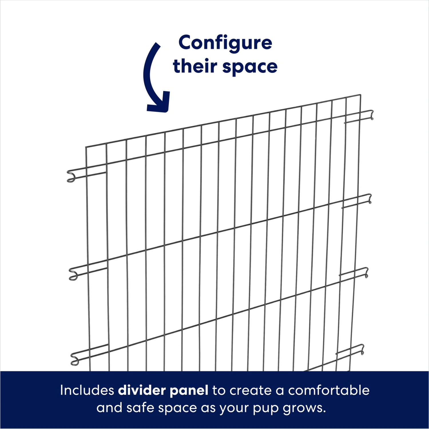 • Removable divider panel allows you to create a smaller space, so the crate’s size can be adjusted to accommodate your puppy as they grow, making it an essential accessory they’ll use throughout their life.