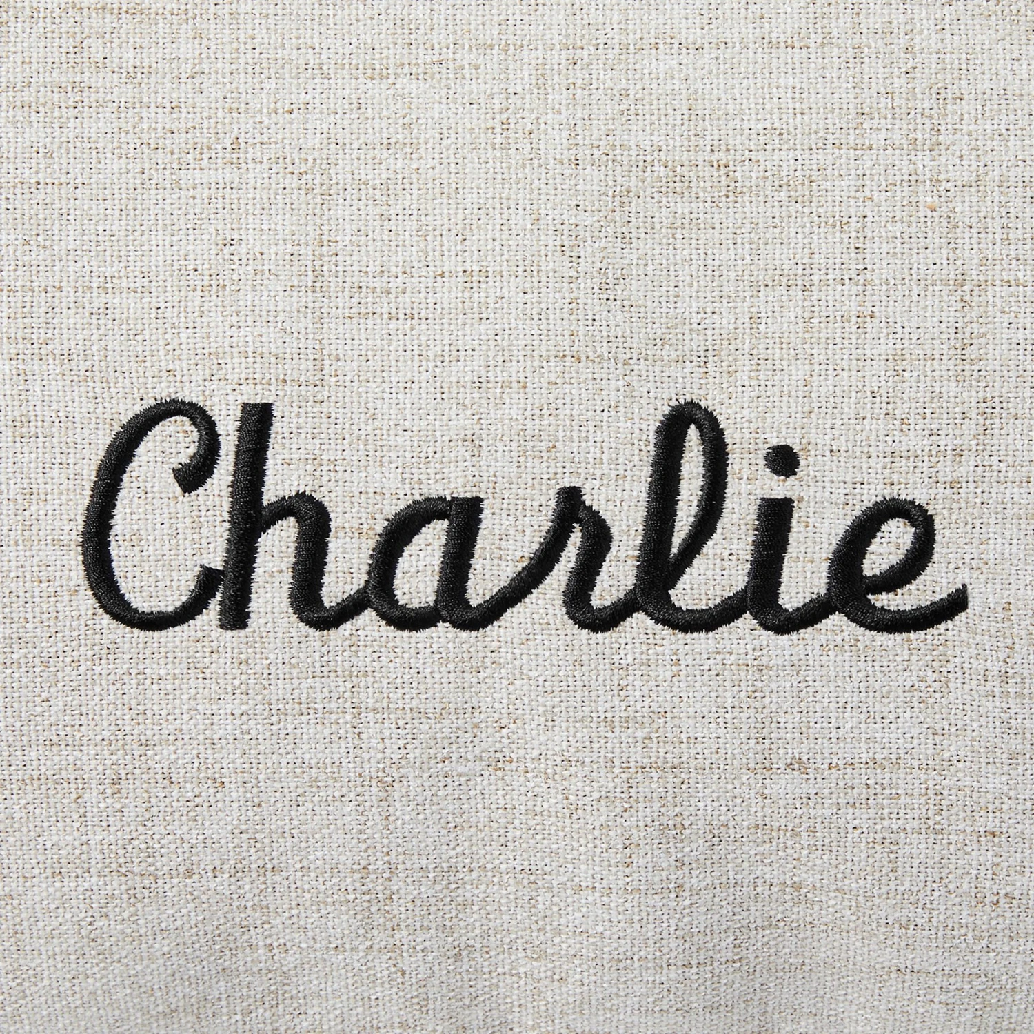 Customize a nap spot just for your dog with the Frisco Personalized Knife Edge Bed! This special sleep spot is personalizable with up to 10 embroidered characters in your choice of black or navy blue thread, and flair script or block caps font. This bed literally has their name on it! It’s got a soft, microfiber cover in a neutral beige with lots of lofted polyfill inside, so it’s perfectly comfortable for your bestie and it looks great in your home. Plus, there’s no need to worry if it gets a little dirty—just unzip the YKK zipper and give the machine washable cover a spin to keep it clean, comfortable and inviting, nap after nap.